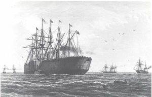 The Great Eastern, launched in 1858, was a huge steamship designed by the brilliant engineer Isambard Kingdom Brunel. As well as being famous for his work on railways, Brunel was also interested in using steam to power iron ships. The Great Eastern was the third of his huge shipbuilding projects.