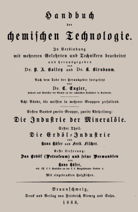 Höfer von Heimhalt, Hans. 1906. Das Erdöl und seine Verwandten. Geschichte, physikalische und chemische Beschaffenheit, Vorkommen, Ursprung, Auffindung du Gewinnung des Erdöles. Handbuch der chemischen Technologie. Second Edition. Braunschweig: Friedrich Vieweg und Sohn.