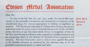 - ↑ 4.0 4.1 Documents. Edison Medal Association. Collection of David & Julia Bart. (1904a, Jan. 1). Edison Medal Association Subscription and Form.