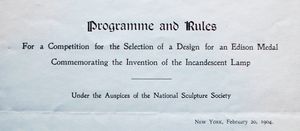 - ↑ 20.0 20.1 Documents. Edison Medal Association. Collection of David < Julia Bart. (1904c, Feb. 20). Programme and Rules For A Competition For The Selection of a Design For And Edison Medal Commemorating The Invention of the Incandescent Lamp.