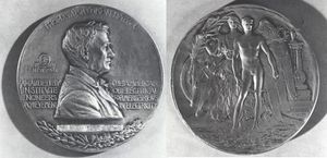 The medal was intended to "serve as an honorable incentive to the youth of America to maintain by their works the high standard of accomplishment by the illustrious man whose name and features shall live while human intelligence continues to inhabit the world."[8] The annual student award was to include a parchment certificate and a gold medal funded by the annual interest earnings on the gift. Unfortunately, after the 1904 celebration, little progress was made.