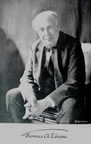 McNichol, T. (2006). AC/DC: The Savage Tale of the First Standards War. San Francisco: Jossey-Bass. - ↑ A number of these former employees and associates of Edison would later form the Edison Pioneers in 1918. This group was established to memorialize Edison through public works, including preserving Edison artifacts and historic places, funding scholarship medals and building memorials. The group met annually on Edison's birthday. The original Edison Pioneers included 28 members and 230 former associates of Edison. The following are noted in particular: