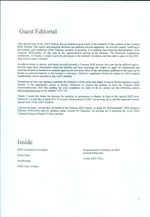 The IEEE Tunisia (Tynisia) Section was formed in June 2008 with a startup membership of around 300. It is located on the continent of Africa, and in IEEE Region 8. The section is not represented on any Council.