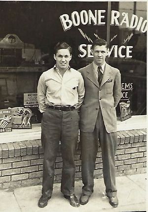 Boone was born the only child of Dorothy Bliss and Virgil Bennett Boone, on 1 September 1933 in Little Rock, Arkansas, USA. From an early age, Boone developed an interest in electronics through his exposure to the equipment in his father's business, Boone Radio Service (see first two photos below). Seeking to support the U.S. war effort in his middle age, Boone's father sold his electrical supply and radio shop and moved the family in 1942 to Grand Isle, Louisiana. There he joined the first Civil Air Patrol (CAP) on the U.S. Gulf Coast and serviced the avionic systems of the airplanes combating the German U-boats attacking shipping offshore (see third photo below). By 1944, with the decline of the U-boat threat, the Boones moved to Metairie, just outside New Orleans, where Virgil serviced Sperry Gyroscope Company's gyro-compasses for ships arriving in port from the Mississippi River or the Gulf of Mexico.