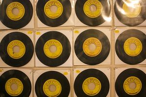 The long playing (LP) record and the 45-rpm disc were two different approaches to high fidelity music, introduced by two different companies in the late 1940s. Since the beginning of the phonograph, most records had played for about two or three minutes. Sometimes record companies issued longer recordings on large, 12-inch discs. But when the RCA Company began work on an improved disc in the mid-1940s, they stuck to the idea that a record should not have to hold more than one song. In order to make the disc smaller than the 10-inch, 78-rpm discs used since the 1890s, they reduced the speed to 45-rpm and used a much finer groove. This meant that they could pack in more grooves in a smaller space. They used a new plastic material, called vinylite, which resulted in the playing stylus picking up less noise and hiss. World War II interrupted this work, but the new 45-rpm disc and its player were introduced with great fanfare in late 1947.