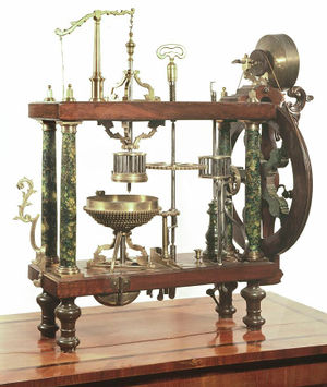 Ippolito Francini of Florence, who furnished lenses to Galileo, produced laps using a lathe with a pivoted boring bar that could cut an accurate portion of a hemisphere. The same machine was also used to polish lenses by substituting a buffer for the cutting tool. The cavity's radius of curvature was controlled by adjusting the length of the rod that held the cutting tool. The machine was sophisticated enough to incorporate a flywheel to smooth the hand-cranked rotation.