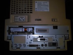 The Macintosh was the first large-scale (and keystone) commercial user of the Sony 3.5” micro-floppy, a drive whose hard shell and shutter protected the media as compared with the industry-standard 5.25" floppy. Wendell Sander and Bob Bailey, with help from Ron Nicholson, designed a single-chip integrated floppy controller called the "Integrated Woz Machine" (IWM) [Ref-4: '448 patent]. The IWM chip exactly implemented the state machine of Steve Wozniak’s ingenious Apple II floppy disk controller design, which had already dramatically reduced the number of chips used as compared with earlier floppy disk controllers. This IWM chip thus maintained compatibility with older Disk II media, and also supported the faster 3.5" micro-floppy drive which used the more complex system clock of the Macintosh.