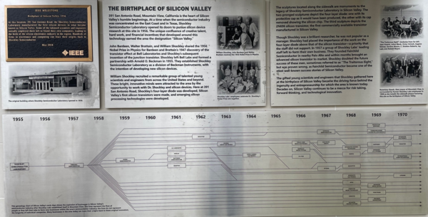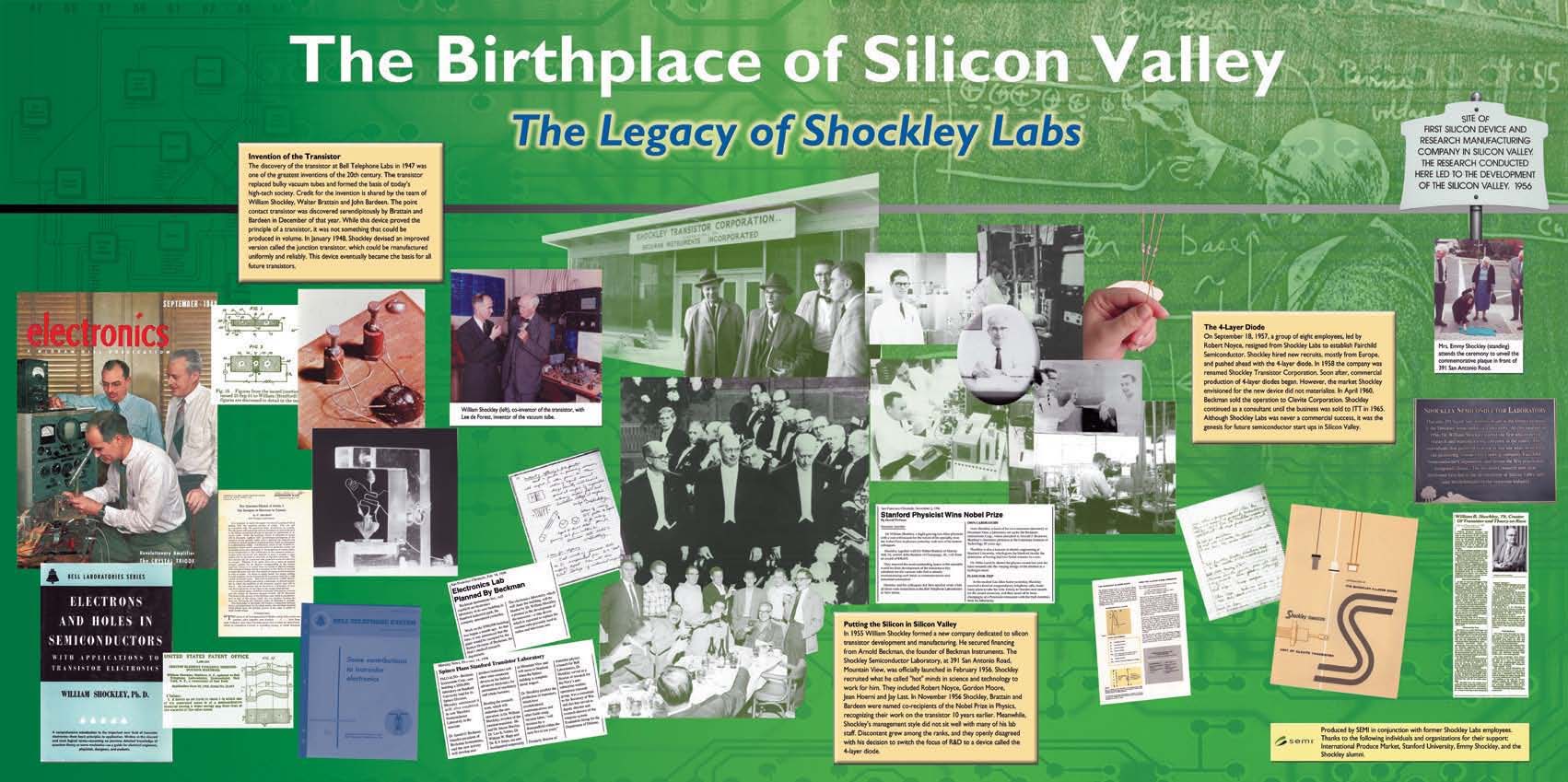 The Shockley banner. JPG titled "The Birthplace of Silicon Valley" shows the Shockley Labs legacy. It is resident at the Computer History Museum. It is also shown in http://siliconvalley.sutromedia.com/shockley-semiconductor-lab.html