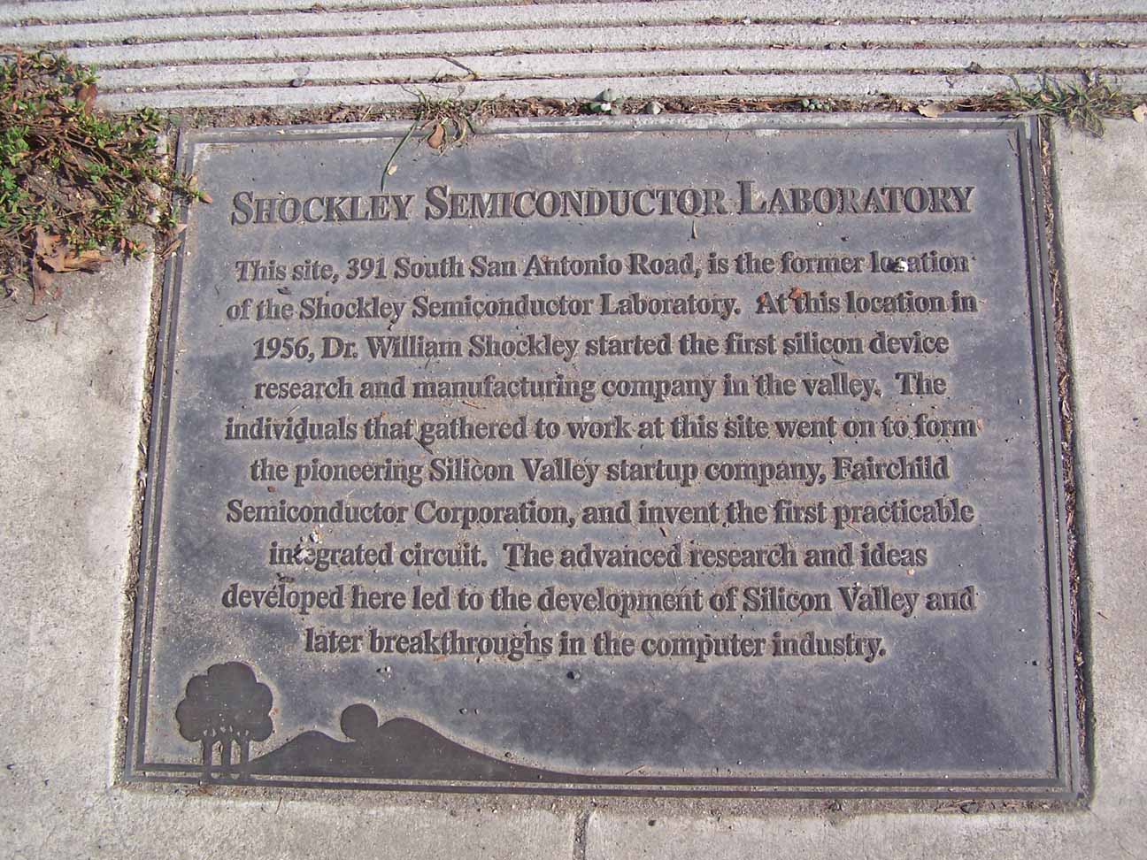 Bronze Plaque and roadside sign. http://wikimapia.org/23273177/Shockley-Semiconductor-Laboratory-markers