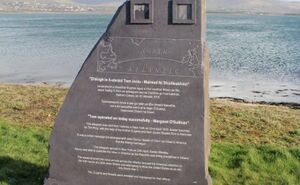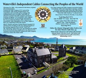 - Site 2: on a white pillar at the end of a wall at the street entrance to The Old Cable House (the original Waterville Cable Station), which now houses Mary Loos Seafood
