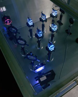 The first full-field step-and-scan 193-nm lithography system was built by SVG Lithography and installed in the Lincoln Laboratory cleanroom facilities (Figure 1). This system's performance was then tested and characterized jointly with IBM and SEMATECH. The first 193-nm acid-catalyzed single-layer photoresists were developed jointly with IBM and patterned at Lincoln Laboratory. A test bed was established and utilized to evaluate the long-term performance of optical lens materials, optical coatings, and pellicle membranes; the information obtained in this manner assisted commercial suppliers employed in 193-nm projection systems, including Corning, Heraeus, and Shin-Etsu, to improve their products (Figure 2). The first lithography-grade 193-nm excimer laser was built by Cymer Laser and integrated in the Lincoln Laboratory facility. The first electrically functional ring oscillators were fabricated at Lincoln Laboratory, thus demonstrating the feasibility of the eventual fabrication of integrated circuits (Figure 3). Indeed, the 193-nm lithography pioneered at Lincoln Laboratory has been the engine powering the whole semiconductor industry worldwide, enabling the fabrication of every chip in every leading-edge laptop, smartphone, military system, or data center for the last 20 years.