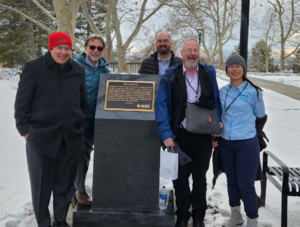 - Site 1: On a 3000-pound granite monument just outside the southwest entrance of the Merrill Engineering Building