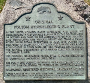 - In the 1850's, Horatio Gates Livermore and later his sons, Horatio P. and Charles E. pioneered the development of ditches and dams on the American River for industry and agriculture. One historic result was Folsom Power House, which began operations in July 1895. Power was delivered to Sacramento at 11,000 volts, which was a new achievement in long distance high voltage transmission. The capital celebrated by a grand electric carnival September 9, 1895.