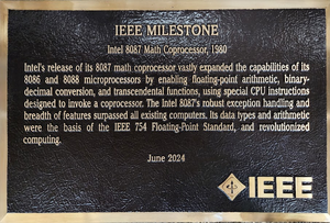 Intel’s release of its 8087 math coprocessor vastly expanded the capabilities of its 8086 and 8088 microprocessors by enabling floating-point arithmetic, binary-decimal conversion, and transcendental functions, using special CPU instructions designed to invoke a coprocessor. The Intel 8087’s robust exception handling and breadth of features surpassed all existing computers. Its data types and arithmetic were the basis of the IEEE 754 Floating-Point Standard, and revolutionized computing.