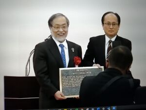 The plaque is to be mounted on a monument built just outside the R&D Center building of Fuji Operations, the intended plaque site.