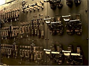 The Direct Current (dc) generating plant installed at the New Yorker Hotel in 1929, capable of supplying electric power sufficient for a city of 35,000 people, was the largest private generating plant in the U.S.A. Steam engines drove electric generators, with exhaust steam used for heating and other facilities. The installation used more than two hundred dc motors, and was controlled from a seven-foot (two-meter) high, sixty-foot (eighteen-meter) long switchboard.