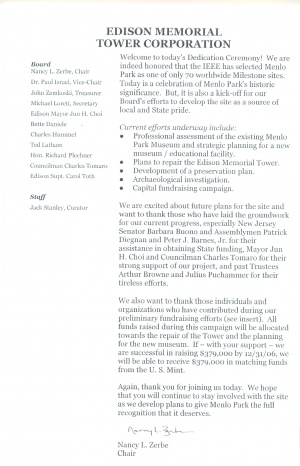 Milestones:Milestone Dedication Ceremony Programs and Brochures