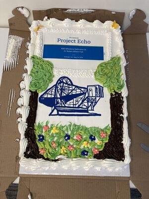 Project Echo (1959-1961) constructed a long-distance wireless communication system which included a novel tracking horn-reflector antenna, a maser preamplifier, and an FM (Frequency Modulated) demodulator. This low noise receiver was the first to provide a high-quality long distance voice circuit via the Echo 1 passive satellite.