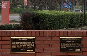 - Site 1: In the SRI Building A Visitors Lobby, the 2nd of 3 Milestone plaques mounted on the left wall