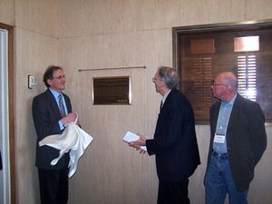 Plaque unveiling: Costas Spanos (UC Berkeley EECS Dept. Chair), Lewis Terman (2008 IEEE President), and Ron Rohrer (UC Berkeley circuit simulation professor)