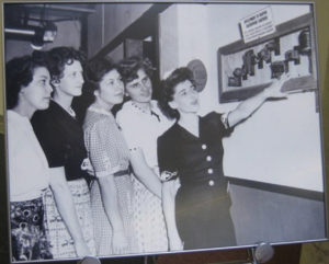 In the lobby of SHURE, Inc.'s headquarters, near a display of historical microphones and documents.