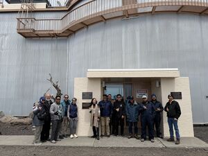 To the left of the entryway to the UH88 building, under the plaque dated August 26, 2014 which commemorates the pioneers of astronomy on Mauna Kea.
