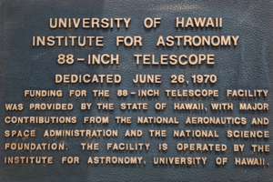3) Christoph’s e-mail dated 10-18-2022 showed current plaque on UH-88 site: NASA and NSF provided significant funding support for the UH-88 for Solar System Astronomy. See photo of site dedication plaque June 26, 1970 mentioning funds from NASA and NSF.
