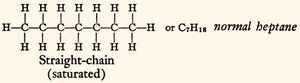 The antiknock characteristics of gasoline are expressed in terms of octane numbers. The octane number refers to standard mixtures of two substances. One of these is the isooctane,[1] more precisely the isomer of octane, 2,2,4-trimethylpentane;[2] the other is heptane.[3] Isooctane has exceptional antiknocking characteristics and petroleum chemists classified it with the arbitrary octane number of 100. On the contrary, heptane detonates much more easily, and its assigned octane number is zero. Blending these two chemical in different proportions it is possible to obtain a vast array of fuels that cover the whole scale of possible gasoline mixtures. This scale is used as a standard tool of reference to classify gasoline-like fuels. It follows that, for example, an octane number of 70 corresponds to a mix containing 70% by volume of isooctane and 30% by volume of heptane.