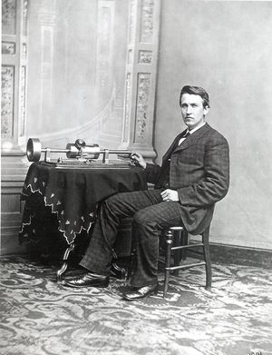That first recording, along with many subsequent test recordings made in 1877 and 1878, are now lost. In a letter, one of Edison’s employees mentioned that plaster casts were made in 1878 of some records, and that the casts were going to be used to make copies. Unfortunately, nearly all these early tinfoil records are lost except for a few, and they have never been played. They are stored in the Edison National Historic Site in New Jersey. The earliest existing cylinder recordings date from almost ten years later, after Edison had introduced his greatly improved “wax” cylinders.