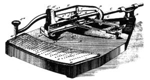 During the Baltimore test, a major failing of the equipment was revealed. The small hand-held punch of the type typically used by train conductors was not suitable for punching thousands of holes per day. Hollerith’s hand and arm became nearly paralyzed after spending a day continually punching holes. To solve this problem, he devised and patented a new punch in which large motions of a manually moved stylus were mimicked by smaller motions of a punch that cut round holes in the card.
