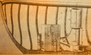 While Rumsey was experimenting with jet boats, Fitch had gone through several evolutions aimed at getting the power from a Newcomen engine into propulsive effort. He had not been successful with a primitive propeller and had gone through a number of paddle arrangements.
