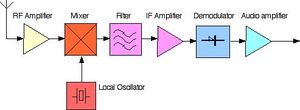 Built on earlier heterodyne techniques, the essence of the superheterodyne circuit is to convert a high-frequency signal to one of intermediate frequency by heterodyning it with an oscillation generated in the receiver. The intermediate frequency signal is then amplified before the detection and amplification that usually occurs in receivers. The superheterodyne circuit has the ability to boost weak signals significantly and makes it possible to reduce the size of antennas dramatically.