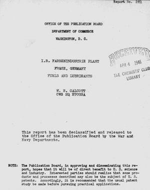 Atwell, H. V. Report on investigation of synthetic lubricating oil plant, Rheinpreussen, Homberg / reported by H. V. Atwell, W. C. Schroeder. Washington, D.C.: Office of the Publication Board, Dept. of Commerce, 1945.