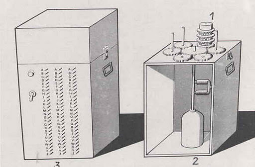 Even though Enigma messages could now be decrypted (which was still unknown by the German military), constant advancements in the Enigma’s security meant the need for constant advancements and reinvention on the part of the Polish cryptanalysts. During this period however, the Poles managed to create some very creative machines to aid in the process of calculating the Enigma’s setup of the day—two of which should be noted. The first was the Cyclometer which connected two sets of three rotors and copies of their respective reflectors in a closed electrical circuit (Kozaczuk, 1984)8. The positions of the rotors within the Cyclometer were arranged to represent the state of the Enigma machine before and after an arbitrary message key was produced, which meant the first rotor of one set was displaced by 3/26th of a full rotation. The electrical path which flowed through the arrangement of these rotors would produce the characters existent in the unique letter-cycle pattern created by a simulated daily key and display them on a glowlamp interface. By cycling through all possible configurations of the rotors, the cycle lengths corresponding to each respective rotor setup could be observed and catalogued. The second, more lasting innovation by the Polish cryptographers was the Bomb (or Bomba) which performed a similar operation to the Cyclometer but also accounted for the six possible arrangements of the three rotors within the Enigma machine. This required as many as six rotor sets to be configured in series through an electrical circuit so more possibilities of the daily key could be tested simultaneously. According to Rejewski, the bomb was able to do the work equivalent to 100 workers at the cipher bureau. (Kozaczuk, 1984)9